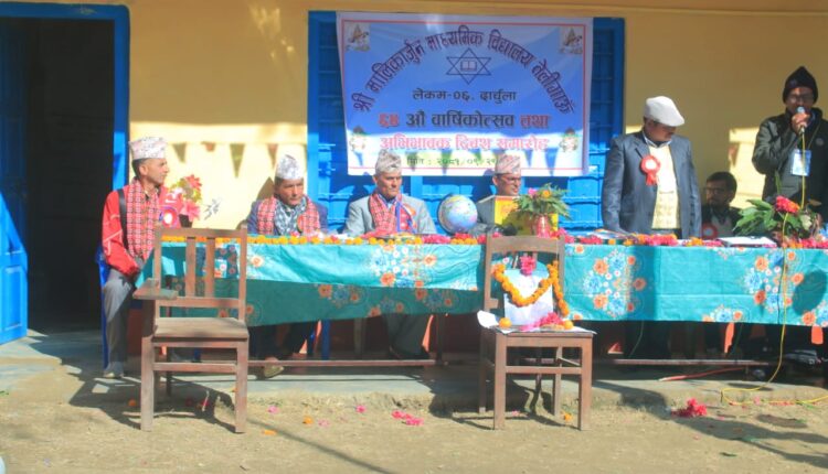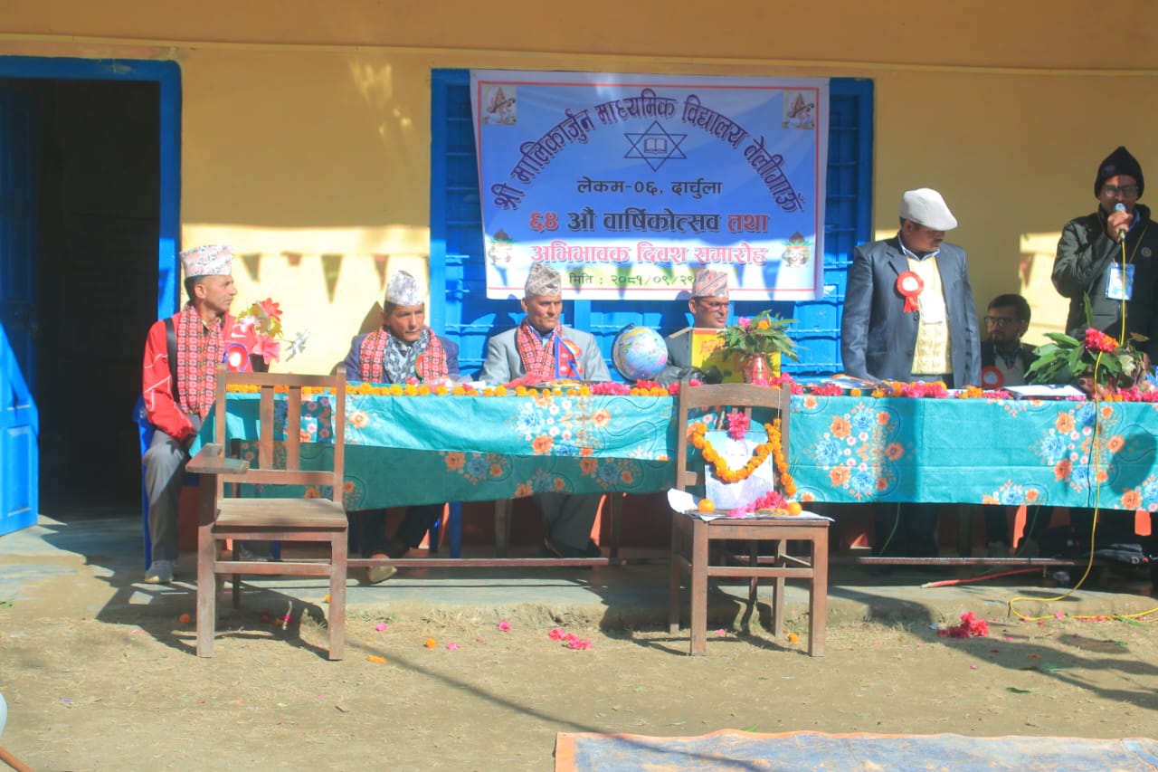 गोकुलेश्वर । दार्चुलाको लेकम गाउँपालिका वडा नम्बर ६ स्थित मालिकार्जुन माध्यमिक विद्यालय तेलिगाउँको ६४ औँ वार्षिकोत्सब कार्यक्रम उद्घाटन भएको छ । सोमबार (आज) एक कार्यक्रमका बिच विद्यालयको ६४ औँ वार्षिकोत्सब समारोह उद्घाटन गरिएको हो ।