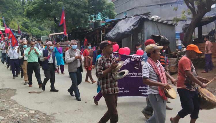 बिहान १० बजे नगरपालिकाको कार्यालयबाट बाजागाजासहित नगरप्रमुख विजयसिंह धामी लगायत नौ वटै वडा अध्यक्ष,जनप्रतिनिधि,सरकारी तथा गैरसरकारी निकायका प्रमुखहरु, नागरिक समाजका अगुवा, सञ्चारकर्मी तथा सुरक्षाकर्मी प्रभात फेरीमा सहभागि भएका थिए ।